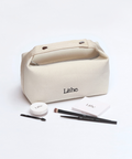 Transition effortlessly from makeup organizer to everyday handbag with the new Lithe Carryall, featuring an ivory canvas body, woven handles, and smart compartments for ultimate style and function. Dimensions (inches): 9 x 4 x 4