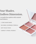 A four-shade matte blush palette designed to warm, sculpt, and enhance in one effortless routine. Each tone blends seamlessly for soft-focus dimension. Wear alone for a natural flush or layer to build subtle structure without harsh lines.